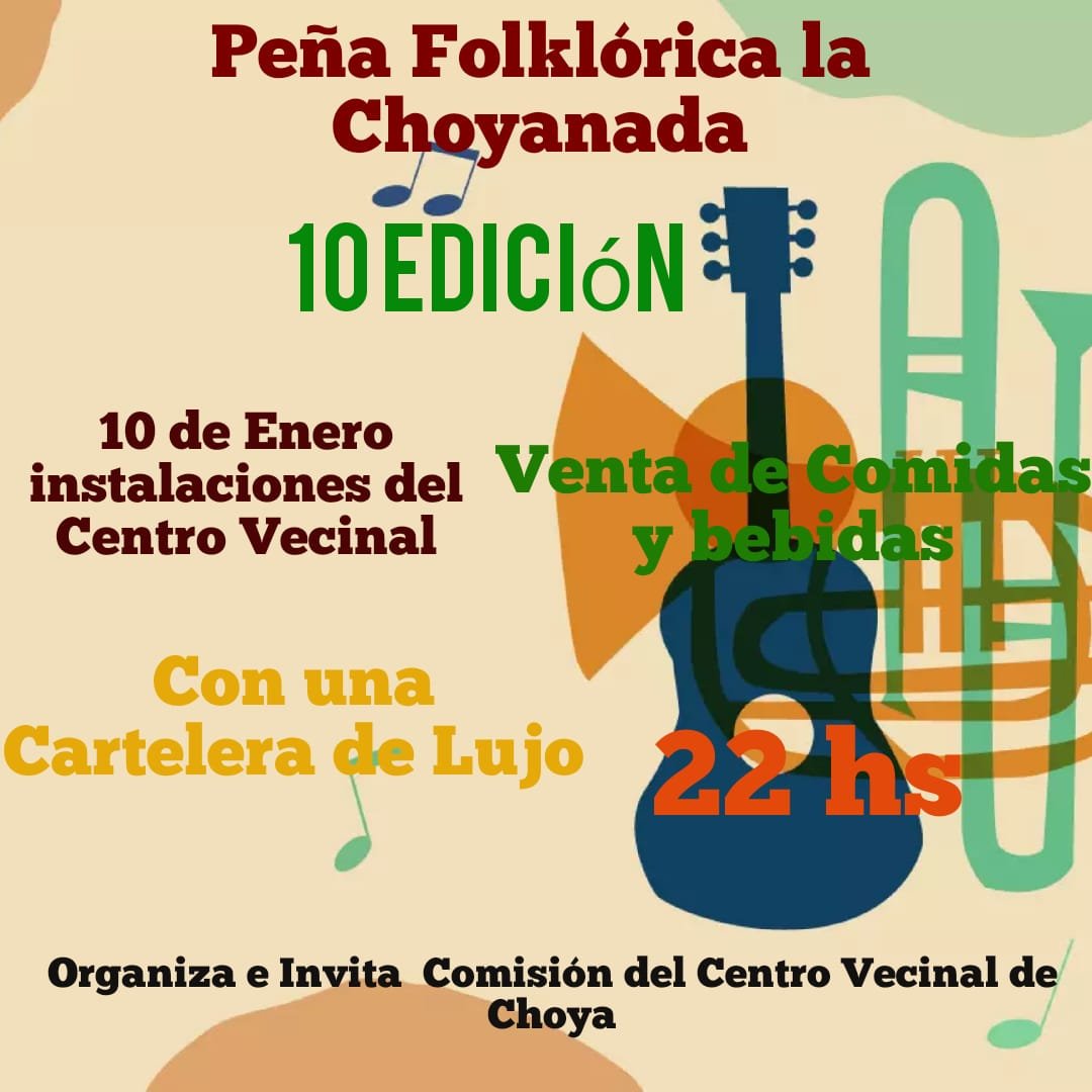 Organizada por el centro Vecinal “San Roque” del distrito Choya, este sábado 10 de enero se concretará la décima edición de la peña La Choyanada.