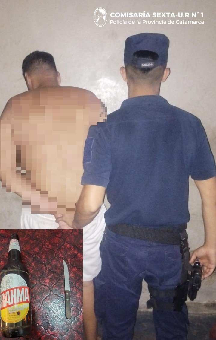 Durante su detención, el hombre intentó atacar a los uniformados utilizando una botella de vidrio y un cuchillo, elementos que fueron secuestrados junto al vehículo en el que se desplazaba. Finalmente, fue trasladado a la dependencia policial y quedó a disposición de la Fiscalía de Instrucción en turno del Distrito Oeste.