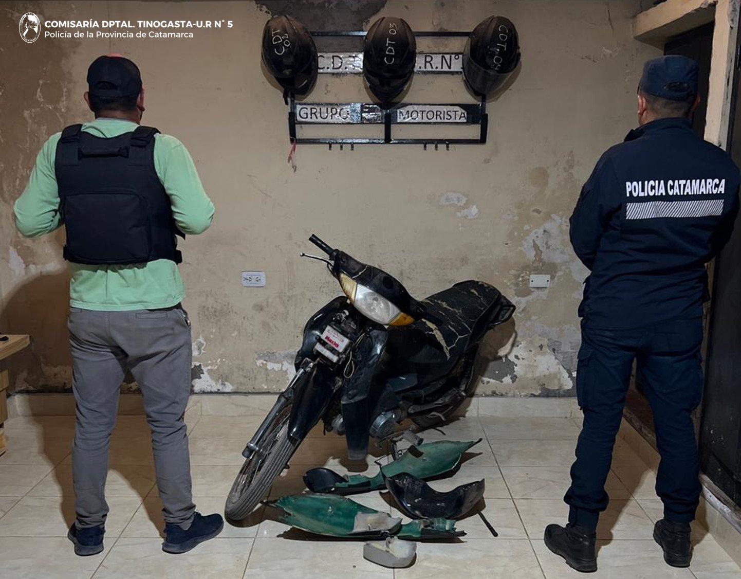 Posteriormente, durante un rastrillaje realizado en cercanías de una escuela de la localidad de Santa Rosa, departamento Tinogasta, los efectivos de Calle de la Unidad Regional N° 5 lograron incautar partes del motovehículo.