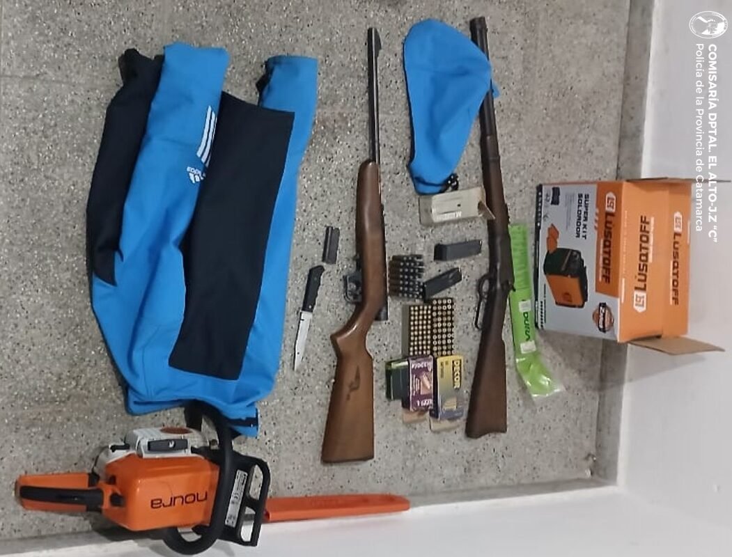 El operativo se llevó a cabo durante la tarde de ayer, luego de que dos hombres denunciaran haber sido víctimas de ilícitos. A partir de las averiguaciones, los uniformados recuperaron un rifle Winchester 1892, una carabina Mahely calibre 22 con su respectivo cargador, dos cargadores adicionales, y varias cajas con cartuchos de calibres 9, 22 y 44 mm, además de una capucha azul, que quedaron en calidad de secuestro.