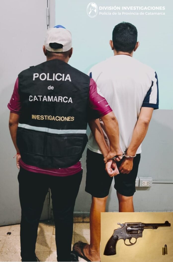 En el lugar y bajo las directivas de la Fiscalía de Instrucción de Séptima Nominación del Distrito Este, a cargo de la Dra. Paola González Pinto, los investigadores secuestraron un (01) Revólver marca Diablo, calibre 38 largo, con una vaina servida y un cartucho en su tambor, como así también arrestaron en averiguación del hecho a un sujeto de apellido Roldán (35), quien estaría vinculado a un supuesto delito de amenazas, donde un joven de 27 años de edad resultó damnificado.