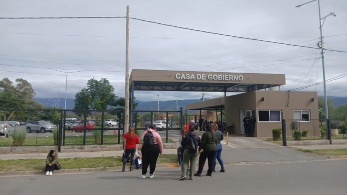 “Estamos a la espera de que nos reciban. Llevamos más de una hora y media acá y no sale nadie”, expresó uno de los manifestantes durante la protesta.
