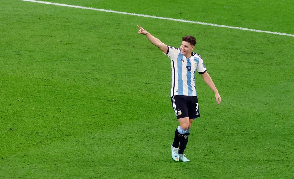 Tras un error en la salida de la defensa de Australia entre el arquero Ryan y Rowles, el número 9 aprovechó la presión de Rodrigo De Paul y el atacante marcó su segundo gol en el Mundial para la selección argentina.