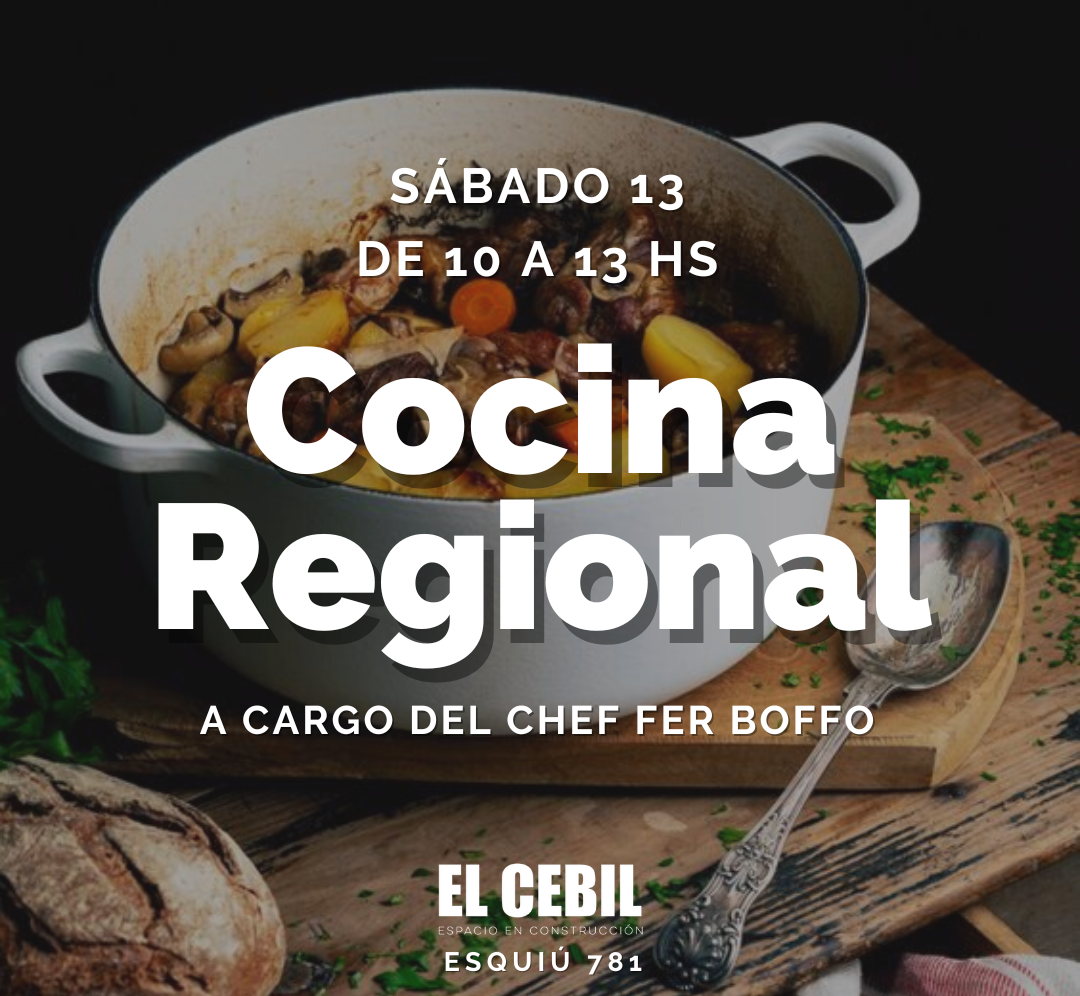 El sábado 13, de 10 a 13 horas, tendrá lugar el taller de Cocina Regional que el chef Fernando Boffo dictará en el espacio cultural El Cebil, ubicado en Esquiú 781.
