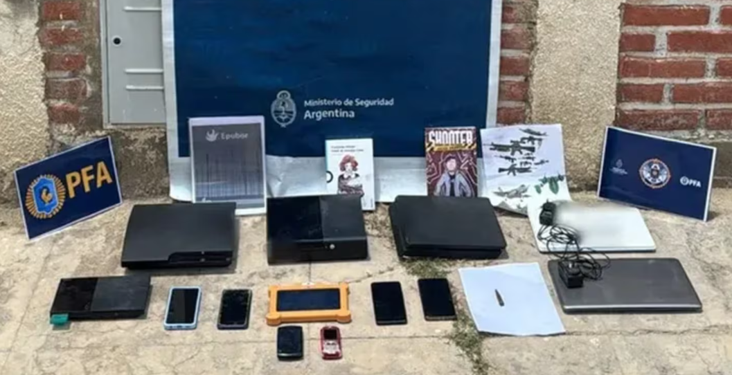 En esos procedimientos, los efectivos incautaron cuchillos de caza, municiones de arma de fuego, material con simbología nazi, tres notebooks, una tablet, siete teléfonos celulares y documentación relevante para la investigación.