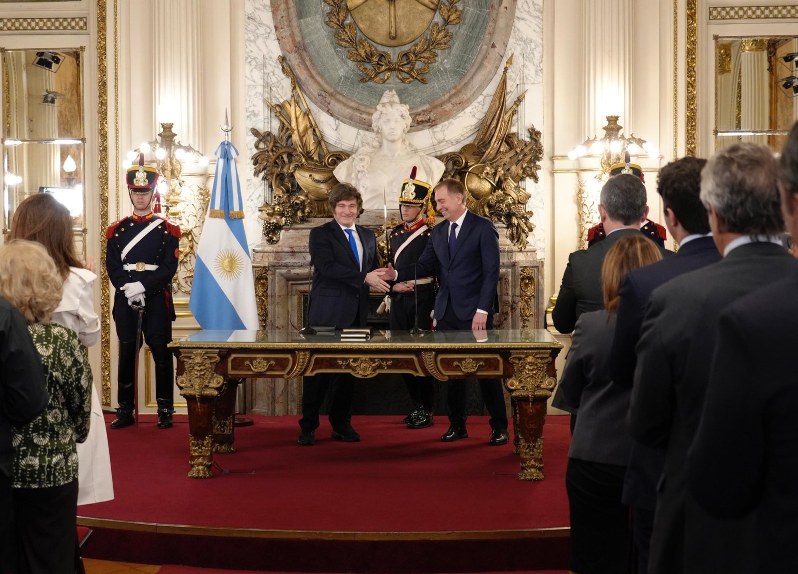 Diego Santilli juró este martes como ministro del Interior en un acto encabezado por el presidente Javier Milei en el Salón Blanco de la Casa Rosada. El ex diputado del PRO, ahora alineado con el oficialismo libertario, asumió el cargo pasadas las 15, acompañado por familiares, integrantes del gabinete nacional y el titular de la Cámara de Diputados, Martín Menem.