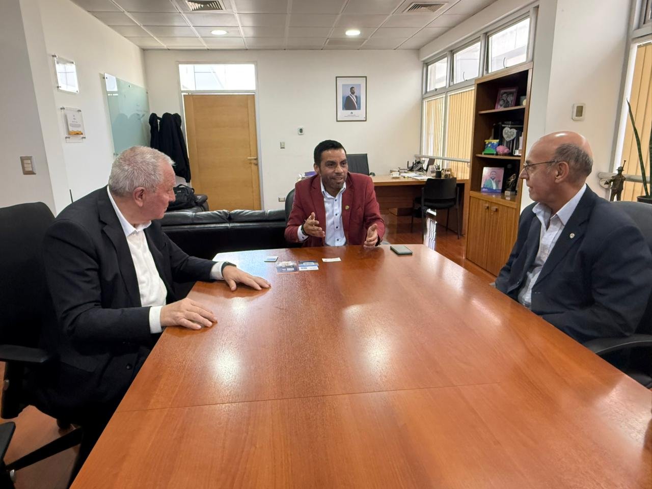Continuando su visita en Chile, el Vicegobernador Rubén Dusso mantuvo este miércoles una reunión de intercambio entre el vicerrector de la UNCA, Carlos Humberto Savio y el rector de la Universidad de Atacama, Forlín Aguilera Olivares.