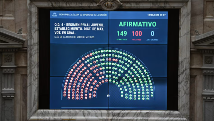 El oficialismo logró la media sanción en la Cámara de Diputados del nuevo Régimen Penal Juvenil, que tiene entre sus puntos principales la baja de la edad de imputabilidad de los 16 a los 14 años. El proyecto impulsado por Patricia Bullrich cosechó 149 votos a favor y 100 en contra, sin abstenciones. El PRO, la UCR, Provincias Unidas, MID, Innovación Federal, Encuento Federal, Independencia, La Neuquinidad, Producción y Trabajo, y Por Santa Cruz votaron junto con los libertarios.