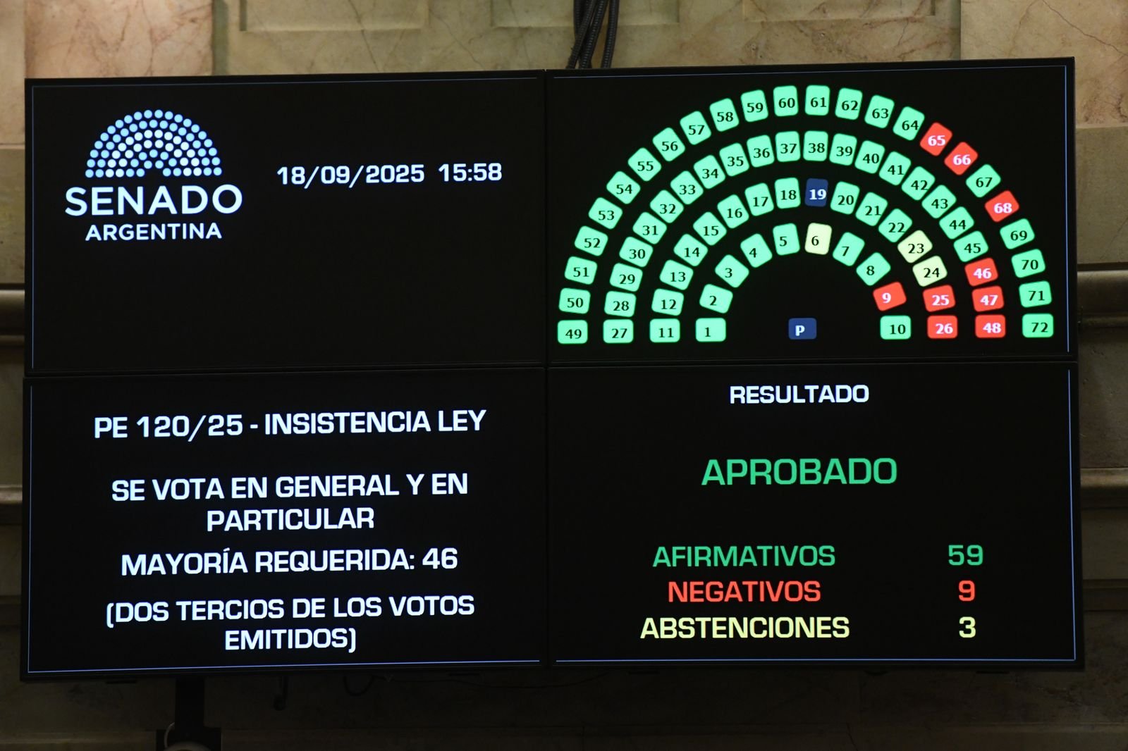 La Cámara de Senadores convirtió este miércoles en un nuevo revés parlamentario para el oficialismo al insistir, por 59 votos a favor, 9 en contra y 3 abstenciones, con la sanción de la ley que establece la distribución automática y cotidiana de los Aportes del Tesoro Nacional (ATN), norma que había sido vetada por el presidente Javier Milei el mes pasado. La iniciativa pasó ahora a la Cámara de Diputados.