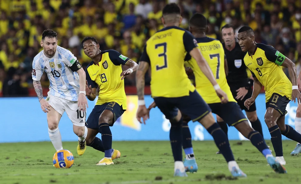 La Albiceleste padeció la presión y la intensidad ecuatorianas en el inicio del partido. El local asfixió en mitad de campo, con la intención de, apenas recuperada la pelota, salir en velocidad en ataque, con el sector izquierdo como el elegido, machacando con Ibarra o Estrada ante Montiel, que sufrió; o con la segunda marcha de Gonzalo Plata. El elenco dirigido por Alfaro llegó dos veces a fondo, con un cabezazo que terminó en el techo del arco y un desborde del citado Estrada, que Tagliafico ensució justo cuando Franco se aprestaba a definir.