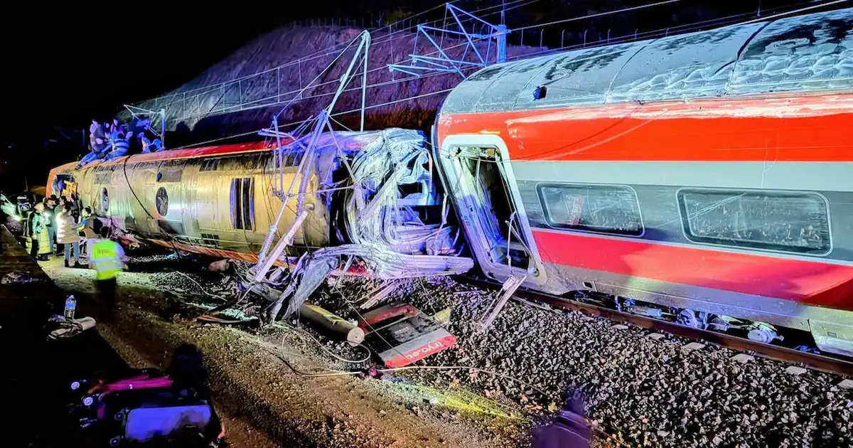 La tragedia se produjo este domingo por la tarde cuando dos trenes de alta velocidad descarrilaron en las vías del sur de España, en los alrededores de Adamuz (Córdoba). El primer convoy, un tren Iryo que circulaba desde Málaga con destino a Madrid-Puerta de Atocha, se salió de la vía e invadió el carril contiguo, provocando el descarrilamiento de otro tren de alta velocidad que circulaba en sentido contrario rumbo a Huelva.