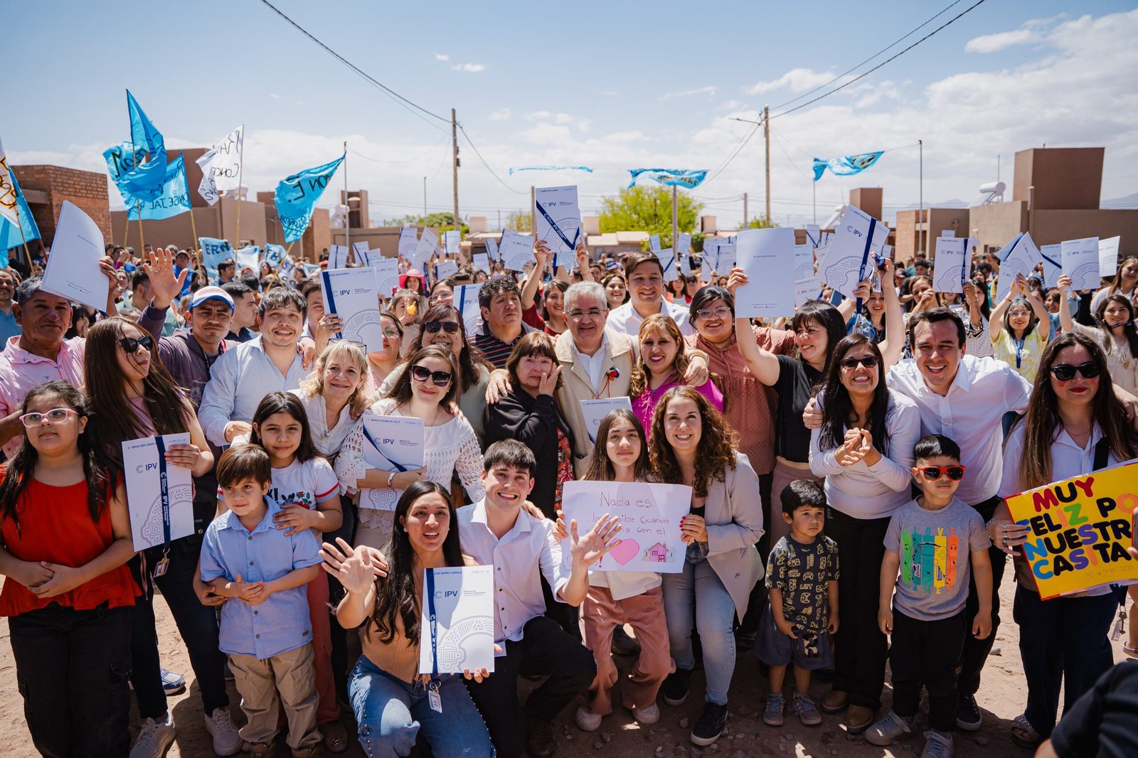 En un emotivo acto en el departamento Tinogasta, el gobernador Raúl Jalil, acompañado por el intendente Ernesto Andrada, concretó la entrega de 90 viviendas ubicadas cerca del predio de Gendarmería.