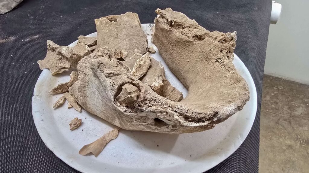 Leonardo Faryluk, técnico de la Dirección de Antropología, explicó que si bien no se logró recuperar el cuerpo completo, el hallazgo incluye piezas de gran valor científico, entre ellas un maxilar con dientes, fémur, costillas, vértebras y una pierna casi completa.