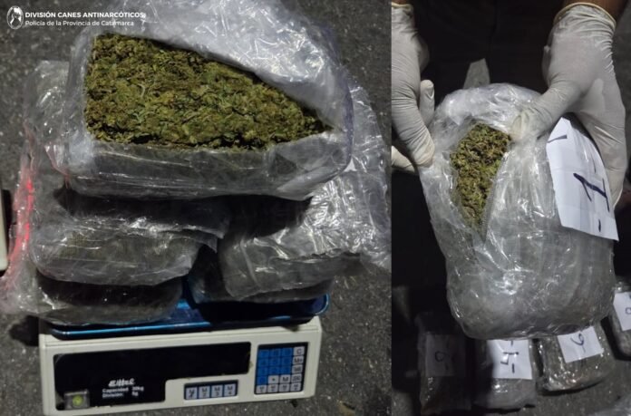 En el marco de un procedimiento contra el narcotráfico, efectivos de la División Canes Antinarcóticos, dependientes de la Dirección Drogas Peligrosas de la Policía de la Provincia, incautaron casi cuatro kilogramos de marihuana y detuvieron a un joven oriundo de la provincia de Tucumán.