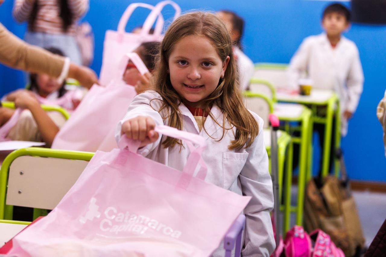 El intendente de la Capital, Gustavo Saadi, junto a autoridades educativas, recorrió las escuelas municipales para concretar una nueva entrega de kits escolares y libros de inglés destinados, por primera vez, a los alumnos de todos los niveles del Sistema Educativo Municipal (SEM). La medida alcanzó a más de 2.200 estudiantes de las instituciones N°1 “El Principito”, N° 2 “Juan Oscar Ponferrada” y N°3 “Gustavo Gabriel Levene”.