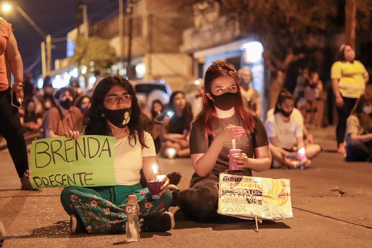 Al cumplirse siete meses del brutal asesinato de la joven, familiares y amigos realizaron una sentada simbólica con velas y carteles sobre avenida Belgrano, frente a la plaza Virgen del Valle.