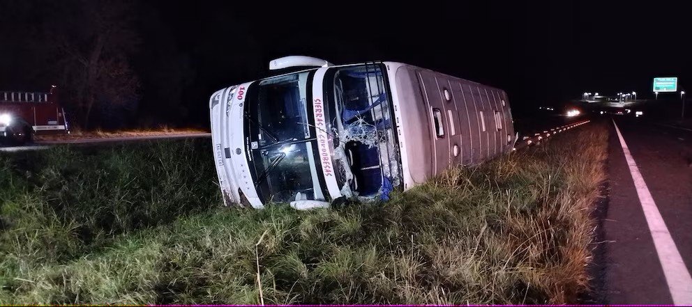 Un colectivo de larga distancia que había partido desde Mina Clavero, Córdoba, con destino a la terminal de Retiro en la Ciudad de Buenos Aires, volcó durante la madrugada de este sábado sobre la Ruta 8, en cercanías de la localidad bonaerense de Capitán Sarmiento.