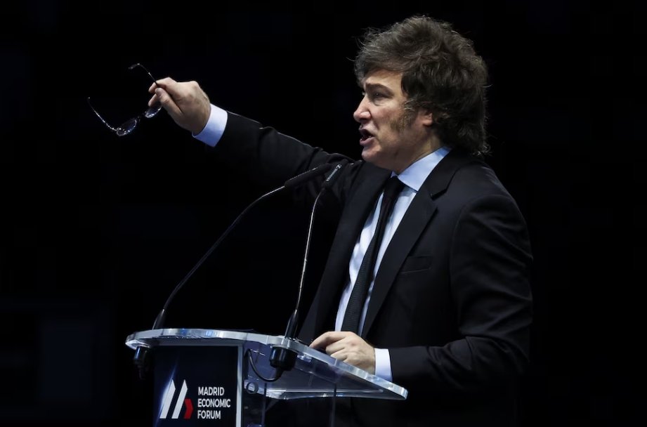 El presidente llegó este viernes a Madrid en la que será su quinta visita a España desde que asumió como Jefe de Estado en diciembre de 2023 para participar del Madrid Economic Forum 2026, un evento de corte ultraliberal dominado por la agenta antiwoke. También se reunirá con su amigo y aliado internacional Santiago Abascal, presidente de Vox.