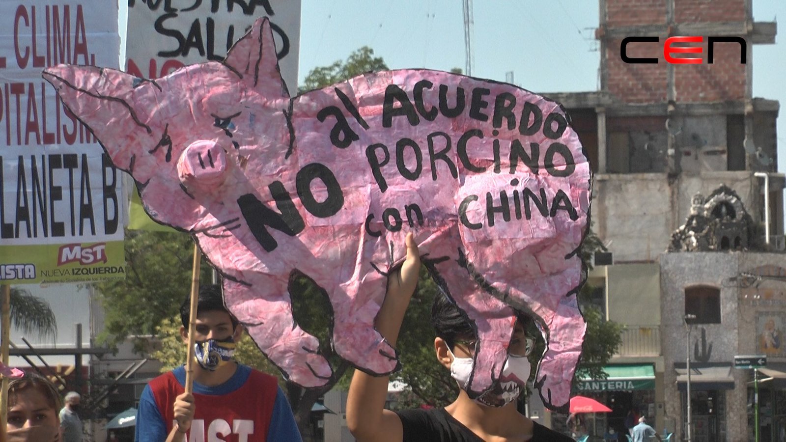 Hoy se llevó a cabo una jornada nacional de lucha en defensa del ambiente en vistas a que este mes es el indicado por el gobierno nacional para firmar el acuerdo porcino con China.
