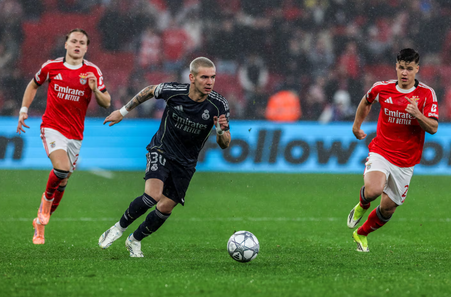 El Merengue tuvo una muy mala noche ante el equipo portugués, que terminó en estado delirante por el gol del arquero ucraniano Trubin en el último minuto que le dio la clasificación.