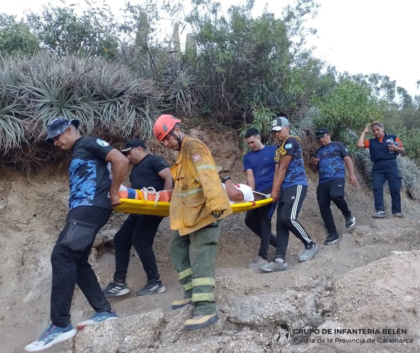 Efectivos del Grupo de Infantería Belén rescataron durante la tarde de este jueves a una turista que sufrió una lesión mientras ascendía al Cerro de la Virgen, en la ciudad de Belén.