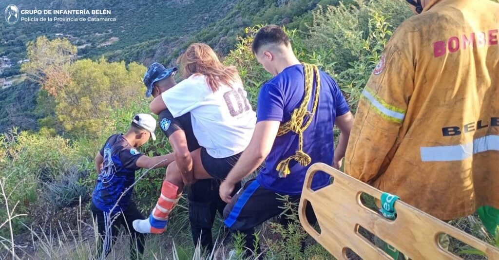 De inmediato, se montó un operativo de rescate. Los efectivos descendieron a la mujer en camilla y, en algunos tramos de difícil acceso, debieron cargarla sobre sus espaldas para facilitar el traslado por el terreno montañoso.