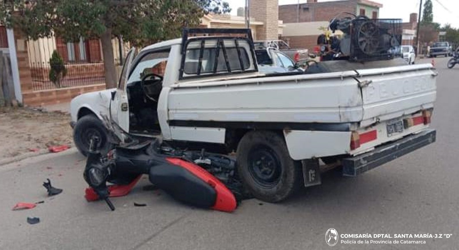 El hecho ocurrió alrededor de las 8:10 sobre calle 25 de Mayo, cuando, por causas que aún se investigan, una camioneta Peugeot 504 blanca, conducida por Cristian Aníbal Álvarez (22), colisionó con una motocicleta Honda Wave 110 cc. en la que se desplazaba un menor de 15 años.