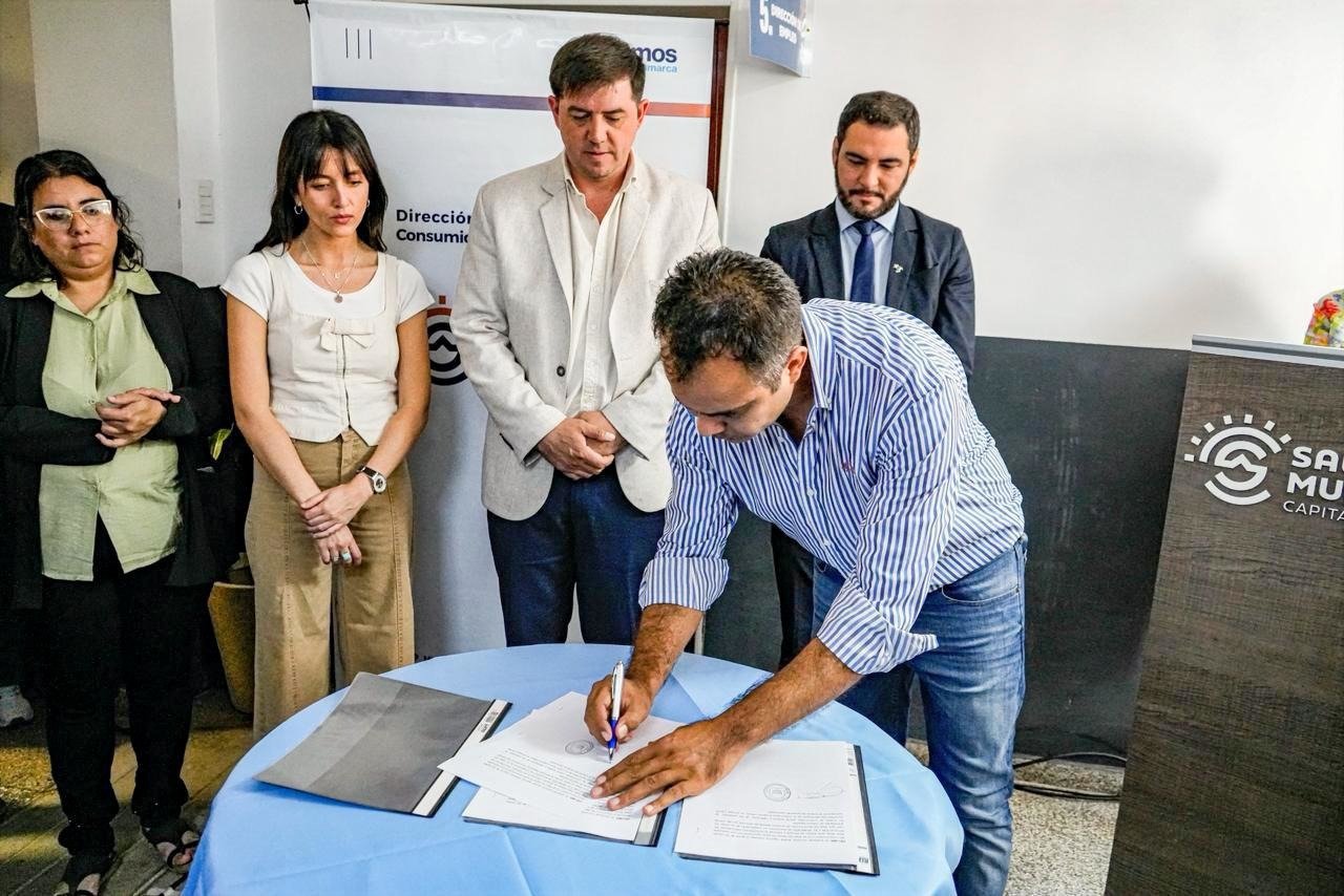 La apertura de la oficina de Defensa del Consumidor fue abierta a través de un convenio que rubricó el ministro Zeballos, con el intendente Carrizo y el director Paredes Correa.