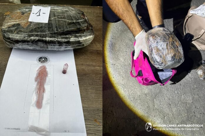 En la madrugada de este jueves, efectivos de la División Canes Antinarcóticos de la Policía de la Provincia secuestraron casi dos kilos de marihuana y detuvieron a un hombre durante un operativo de control en la Ruta Nacional N° 38, a la altura del puesto caminero La Viña, en el departamento Paclín.
