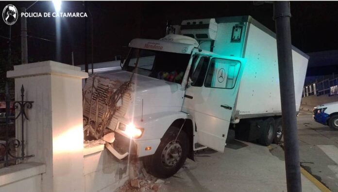 Carlos Armando González (44), oriundo de la Provincia de Mendoza, conducía un camión Mercedes Benz 1620, dominio ANW-202, de color blanco, y por causas que se investigan chocó contra el paredón del Palacio Municipal.