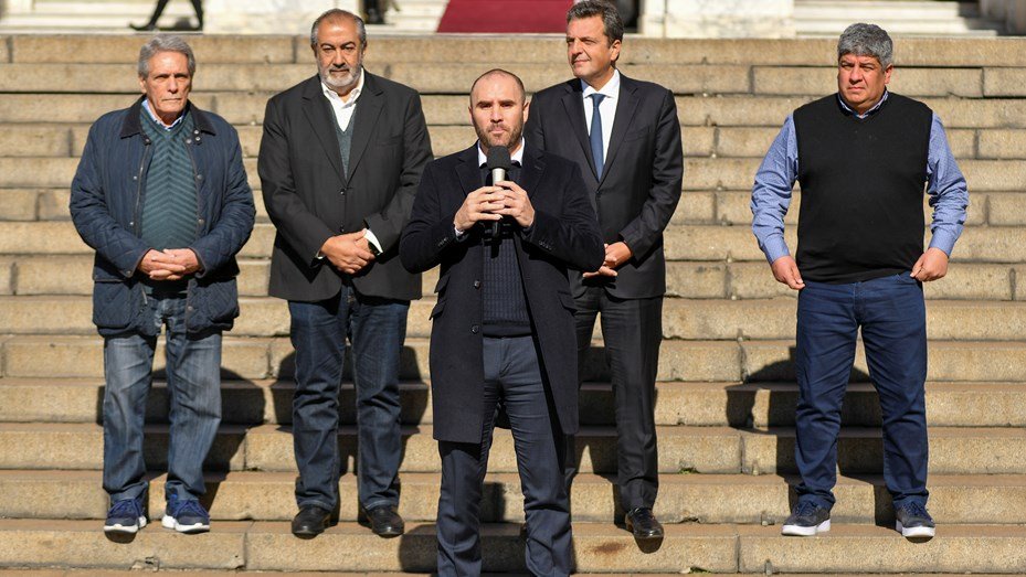 Así, luego de una reunión con el presidente Alberto Fernández en Casa Rosada, el ministro de Economía Martín Guzmán anunció este viernes al mediodía la medida junto a Massa y los secretarios de la CGT, Héctor Daer, Pablo Moyano y Carlos Acuña.