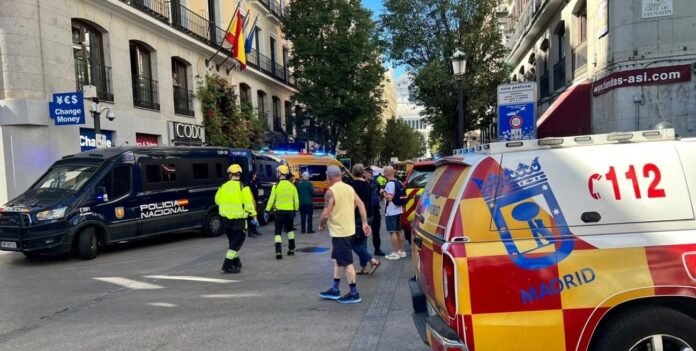 La zona permanece completamente cerrada al tránsito, mientras continúa el amplio operativo de emergencia y rescate en una de las áreas más concurridas del centro madrileño.