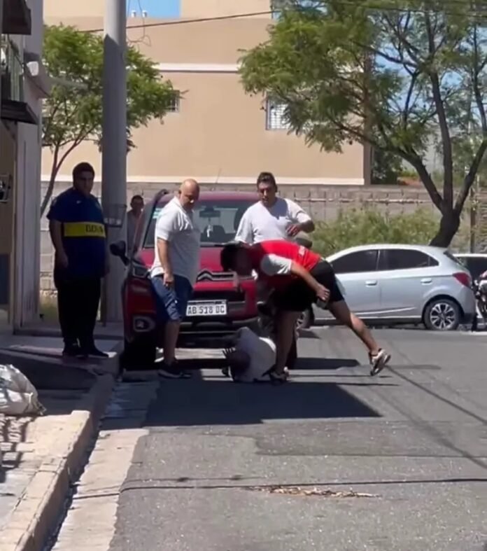 Tras cruzar la avenida, los sujetos increparon nuevamente a Borgogno y lograron que cayera al suelo. De acuerdo con la acusación, Gualquifil le aplicó golpes de puño en la cabeza; Cannata le propinó una patada en la zona dorsal; Salguero le aplicó una patada en la región de las caderas; y finalmente, Gualquifil completó la agresión con otra patada en la espalda y un golpe de puño en el rostro, que le ocasionaron lesiones.