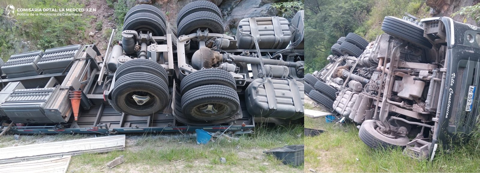A las 18:00 de la tarde de ayer, en el kilómetro 620, de la Ruta Nacional N° 38, a la altura de la Cuesta El Totoral, Dpto. Paclín, se registró un siniestro vial protagonizado por un camión Volkswagen Constellation blanco, dominio AC002SH, semi AD471YB, que transportaba bolsones de cal viva, al mando de Francisco Nicolás Romito (32), oriundo de la Provincia de Buenos Aires, quien por motivos que son materia de investigación, perdió el control del rodado y volcó a un costado de la banquina.